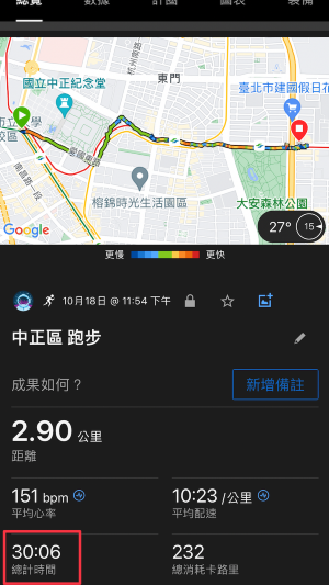 但最後就用這樣 Zone 2-3 的運動強度,成功跑了 30 分鐘!(竟然!)