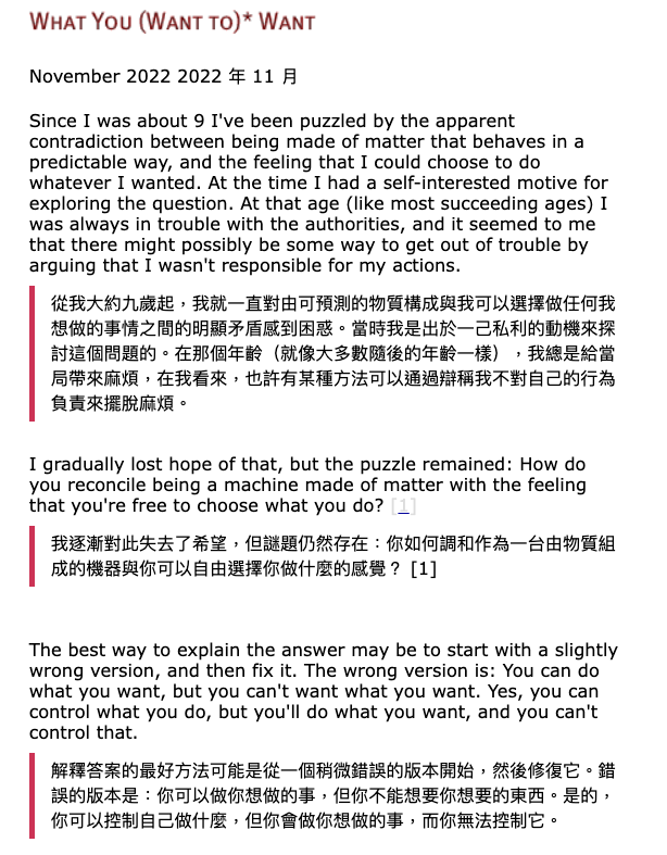 最近很喜歡一個工具叫 沈浸式翻譯,簡單來說就一個可以提供英文/中文的對照翻譯的瀏覽器 extension,是最近大幅提升我吸收學習效率的工具。