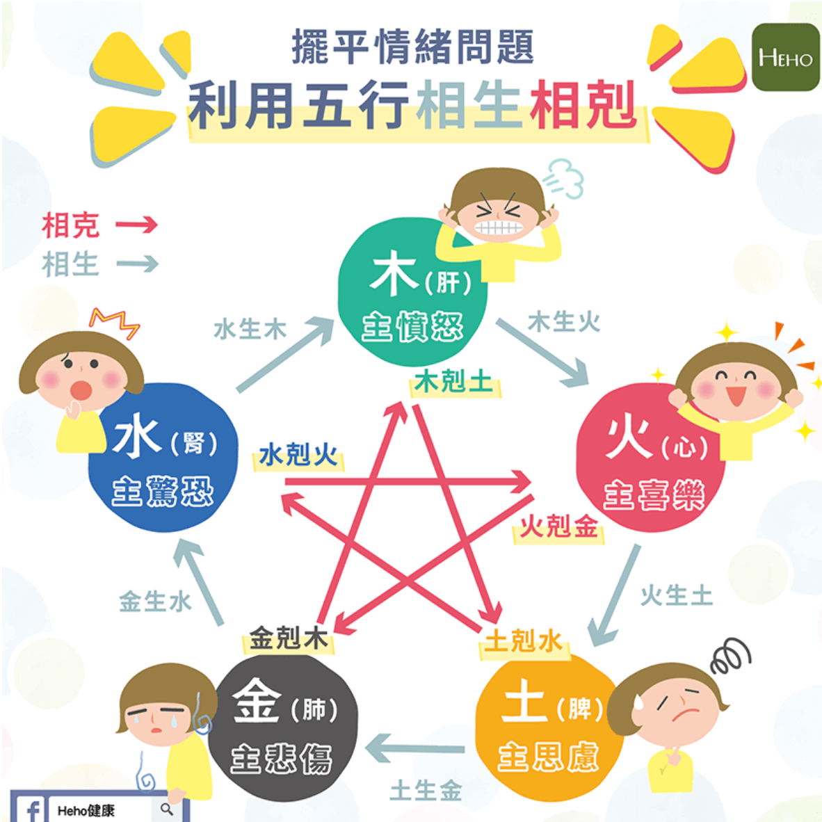 除了「陰陽」之外,身體內的系統,又可以更細的分為「五行」(金、木、水、火、土)